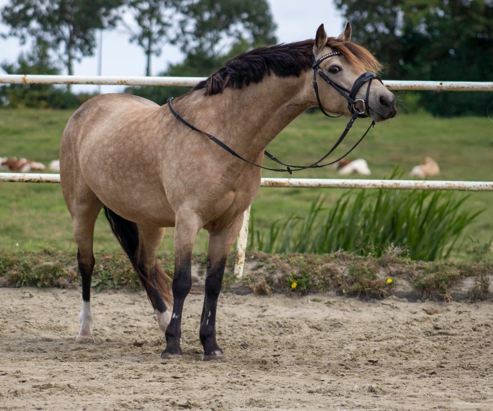 Toen de manege besloot haar te verkopen omdat ze niet rendabel genoeg was, wist ik meteen: ik kon haar niet laten gaan. Star werd mijn eerste eigen pony: een B-Welsh merrie met een rugzakje, maar ook een hart van goud. Ik heb ontzettend veel tijd, liefde en geduld in haar gestoken, en dat heeft zich dubbel en dwars uitbetaald. Star blijft voor altijd bij mij, en daarom draagt zij ook een ereplek in het logo van Allround Star Horses.